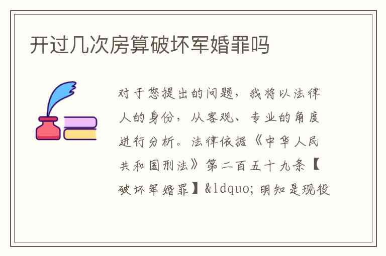 根据上述法律规定,对“开过几次房”是否构成破坏军婚罪的分析如下:
