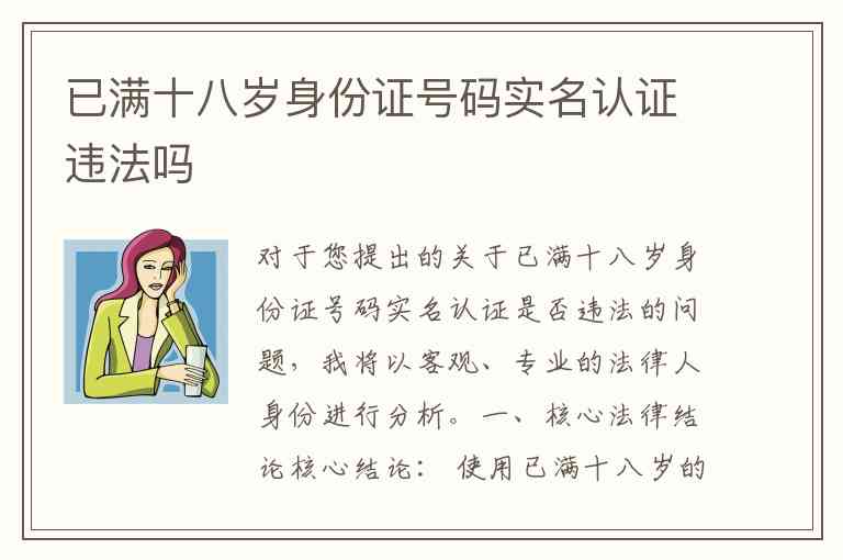 对于您提出的关于已满十八岁身份证号码实名认证是否违法的问题,我将以客观、专业的法律人身份进行分析。