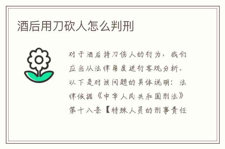 对于酒后持刀伤人的行为,我们应当从法律角度进行客观分析。以下是对该问题的具体说明: