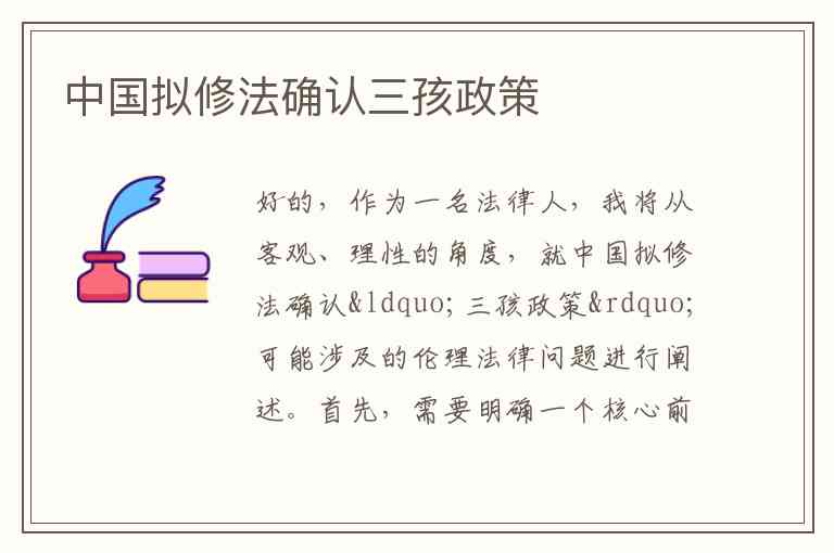 好的,作为一名法律人,我将从客观、理性的角度,就中国拟修法确认“三孩政策”可能涉及的伦理法律问题进行阐述。