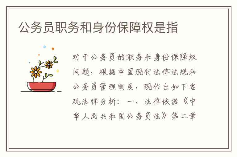 对于公务员的职务和身份保障权问题,根据中国现行法律法规和公务员管理制度,现作出如下客观法律分析: