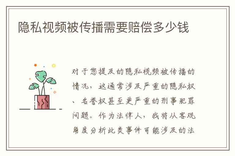 对于您提及的隐私视频被传播的情况,这通常涉及严重的隐私权、名誉权甚至更严重的刑事犯罪问题。作为法律人,我将从客观角度分析此类事件可能涉及的法律责任及赔偿问题。