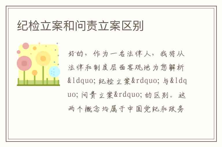 好的,作为一名法律人,我将从法律和制度层面客观地为您解析“纪检立案”与“问责立案”的区别。