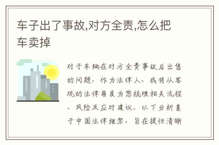 对于车辆在对方全责事故后出售的问题,作为法律人,我将从客观的法律角度为您梳理相关流程、风险及应对建议。以下分析基于中国法律框架,旨在提供清晰、可操作的指引。