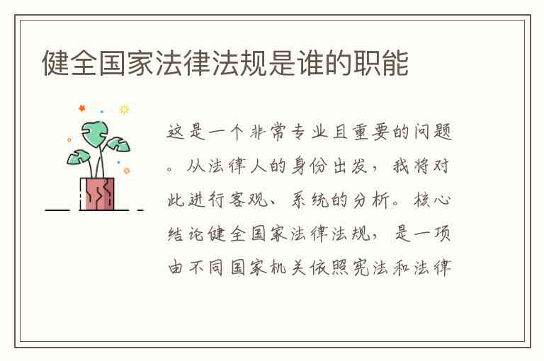 健全国家法律法规,是一项由不同国家机关依照宪法和法律赋予的职权,共同行使的复合性职能。它并非单一机关的职责,而是立法、行政、司法等机关在各自权限内相互配合、相互制约的共同结果。