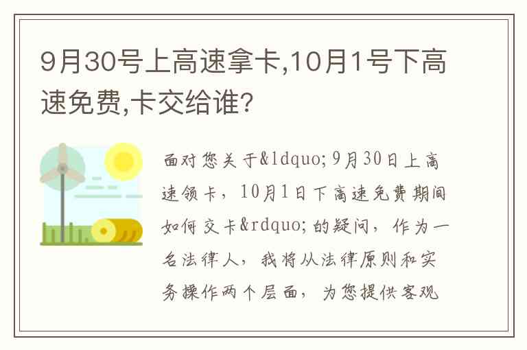 面对您关于“9月30日上高速领卡,10月1日下高速免费期间如何交卡”的疑问,作为一名法律人,我将从法律原则和实务操作两个层面,为您提供客观、清晰的分析。