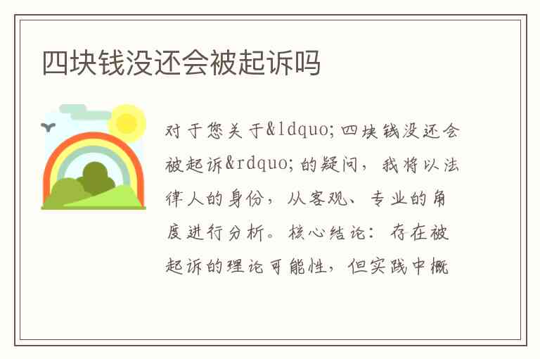 对于您关于“四块钱没还会被起诉”的疑问,我将以法律人的身份,从客观、专业的角度进行分析。