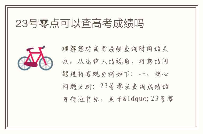 关于查询时间:请以您所在省份教育考试院发布的官方通知为准。若通知明确为“23日零点”,则该时间点查询不涉及法律问题。