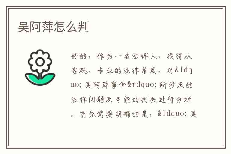 好的,作为一名法律人,我将从客观、专业的法律角度,对“吴阿萍事件”所涉及的法律问题及可能的判决进行分析。