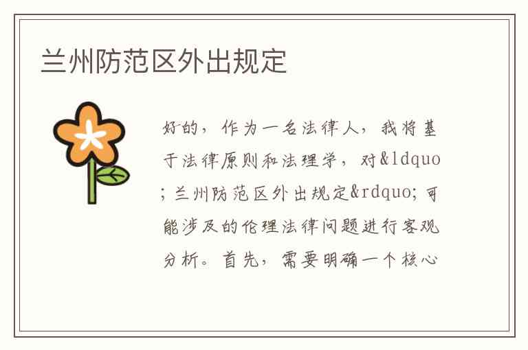 好的,作为一名法律人,我将基于法律原则和法理学,对“兰州防范区外出规定”可能涉及的伦理法律问题进行客观分析。
