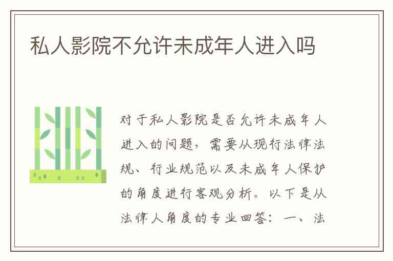 对于私人影院是否允许未成年人进入的问题,需要从现行法律法规、行业规范以及未成年人保护的角度进行客观分析。以下是从法律人角度的专业回答:
