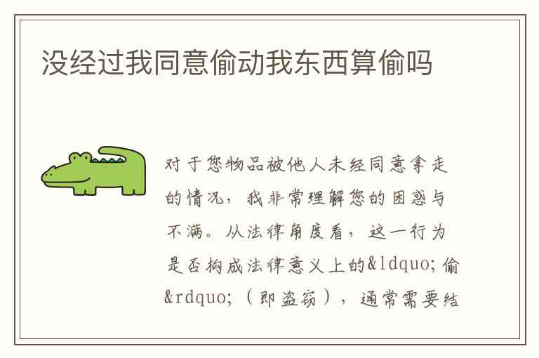根据您的描述,“没经过我同意偷动我东西”是本案的核心事实。在法律上,这一行为通常会被认定为盗窃,因为: