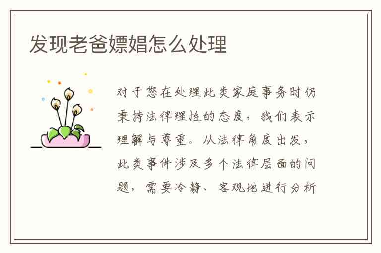 明确界限:向您父亲(如沟通)或向相关机关说明时,需清晰界定其行为的法律性质——属于应受行政处罚的嫖娼行为。避免因情绪化而夸大或混淆其法律责任。