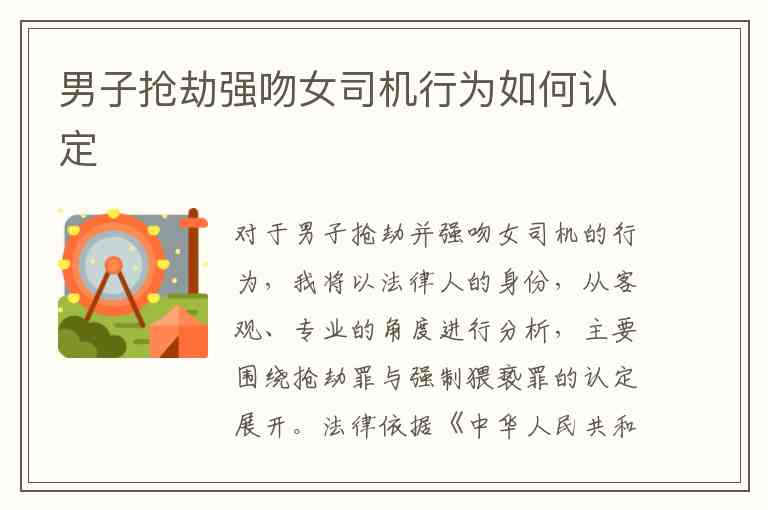 对于男子抢劫并强吻女司机的行为,我将以法律人的身份,从客观、专业的角度进行分析,主要围绕抢劫罪与强制猥亵罪的认定展开。