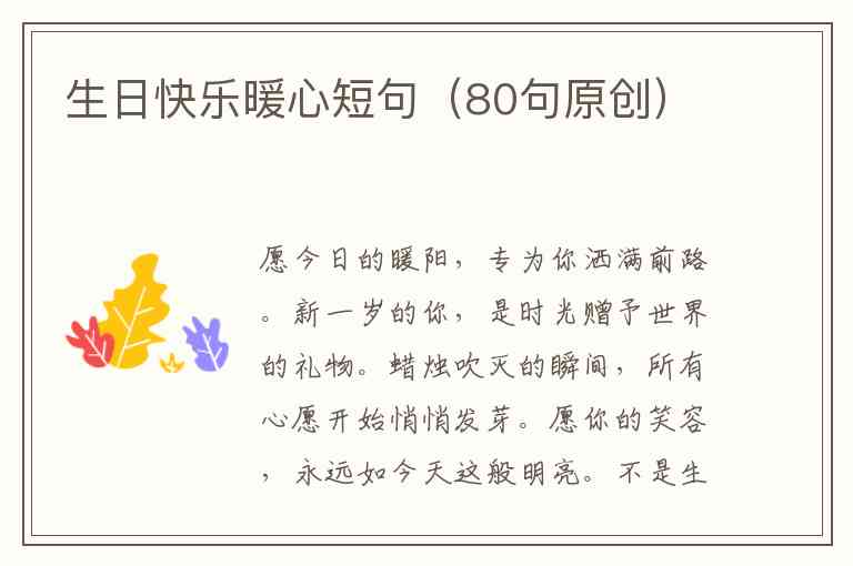 每一句都为你原创,愿字字温暖,伴你岁岁欢愉。生日快乐!