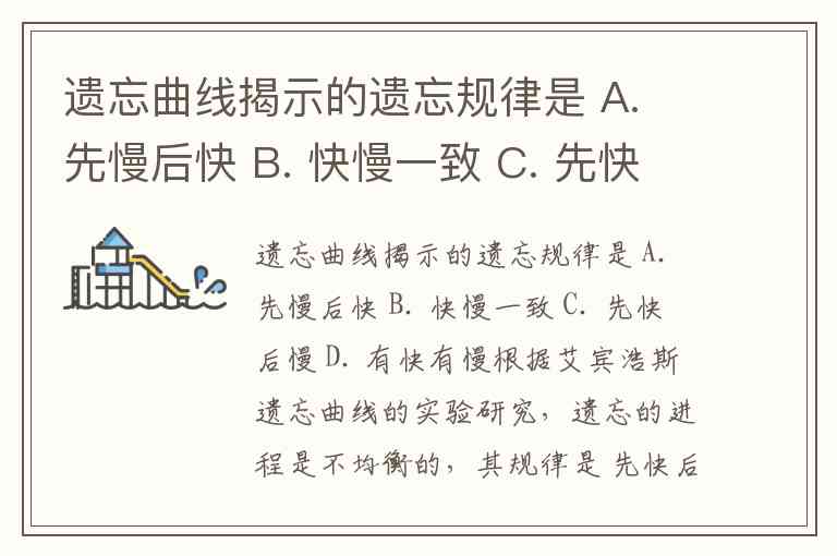 遗忘曲线揭示的遗忘规律是 A. 先慢后快 B. 快慢一致 C. 先快后慢 D. 有快有慢