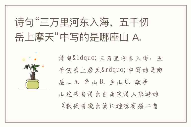 诗句“三万里河东入海,五千仞岳上摩天”中写的是哪座山 A. 华山 B. 庐山 C. 敬亭山