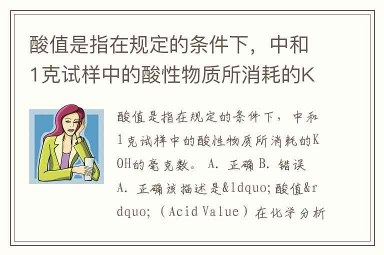 该描述是“酸值”(Acid Value)在化学分析(尤其油脂、石油产品等领域)中的标准定义。测定时通常将样品溶于适当溶剂,用标准氢氧化钾溶液滴定,结果以中和 1 g 样品 所需的 KOH 质量(毫克数) 表示,单位为 mg KOH/g。