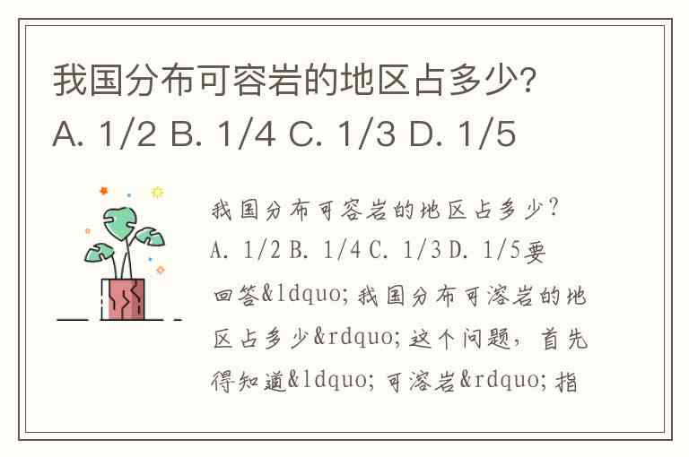 要回答“我国分布可溶岩的地区占多少”这个问题,首先得知道“可溶岩”指的是什么。