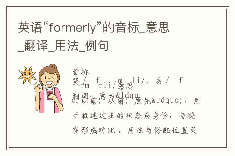 使用时需明确上下文的时间对比,避免与 formally 混淆。例如:She formally announced her resignation(正式宣布辞职)≠ She formerly worked here(曾在此工作)。