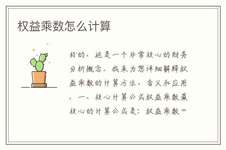 好的,这是一个非常核心的财务分析概念。我来为您详细解释权益乘数的计算方法、含义和应用。