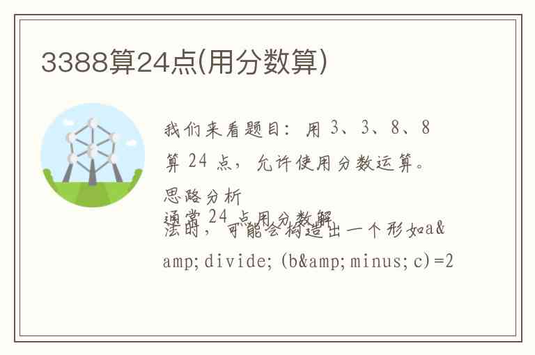 我们来看题目:用 3、3、8、8 算 24 点,允许使用分数运算。