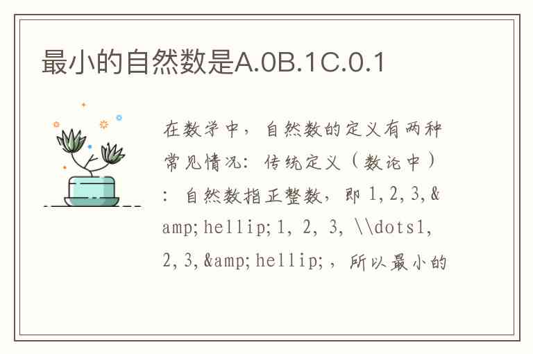 传统定义(数论中):自然数指正整数,即 1,2,3,…1, 2, 3, \dots1,2,3,…,所以最小的自然数是 1。