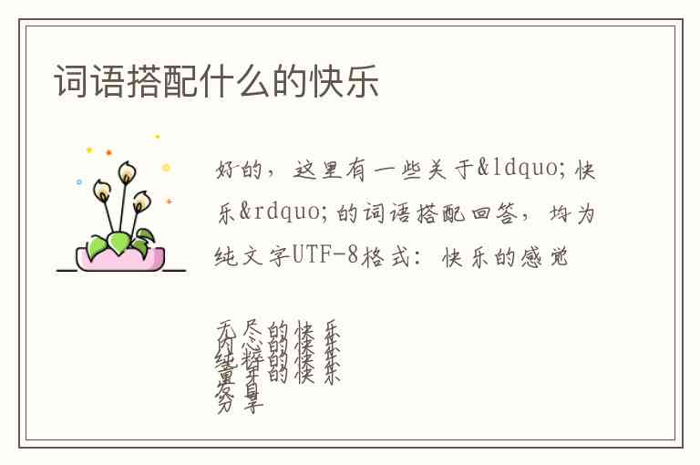 好的,这里有一些关于“快乐”的词语搭配回答,均为纯文字UTF-8格式: