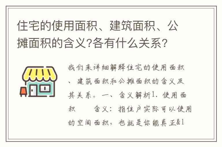 我们来详细解释住宅的使用面积、建筑面积和公摊面积的含义及其关系。
