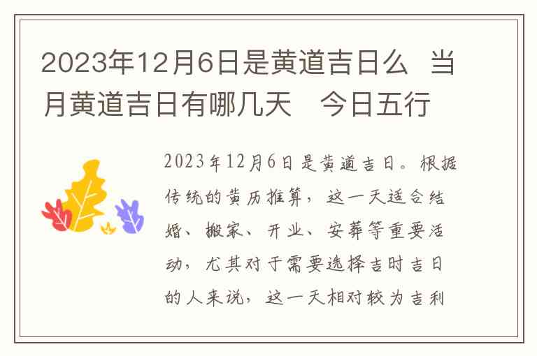 2023年12月的黄道吉日,除了6日之外,还包括12月的其他几天。特别是以下几天: