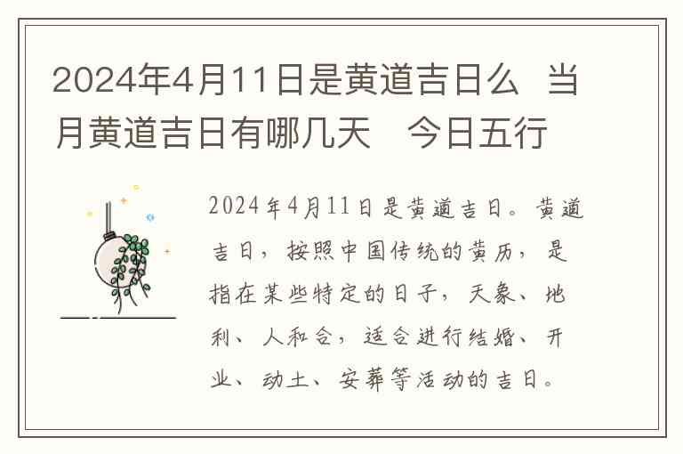 2024年4月11日是黄道吉日。