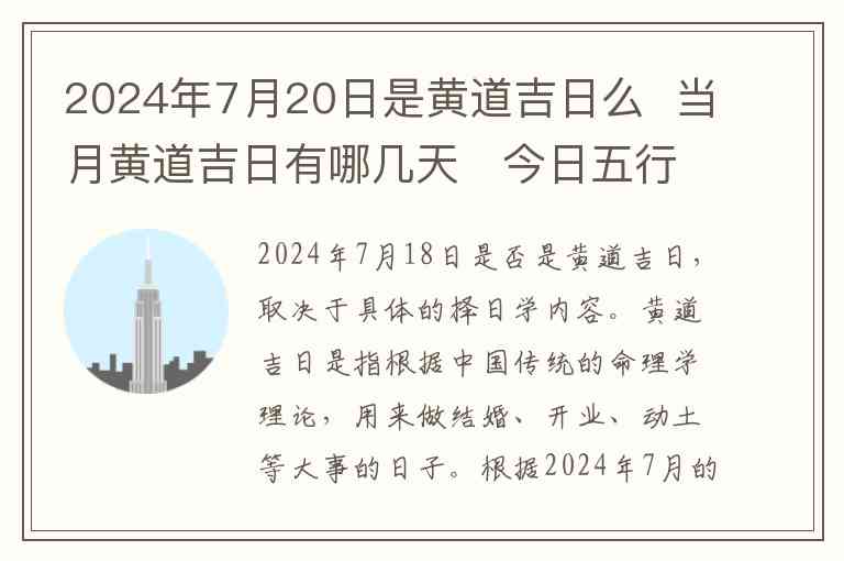 至于2024年7月20日,它是黄道吉日,适合进行各种需要吉利的活动,比如结婚、开业等,属于一个有利的日子,特别适合一些重大的规划和决策。