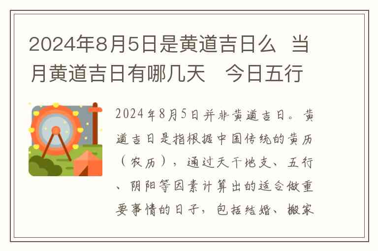 2024年8月5日并非黄道吉日。