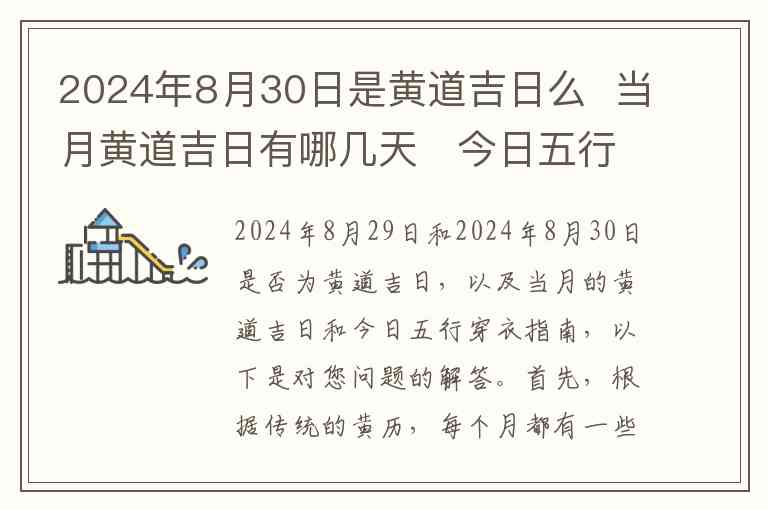 2024年8月29日和2024年8月30日是否为黄道吉日,以及当月的黄道吉日和今日五行穿衣指南,以下是对您问题的解答。
