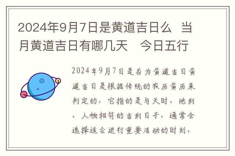 2024年9月7日是否为黄道吉日