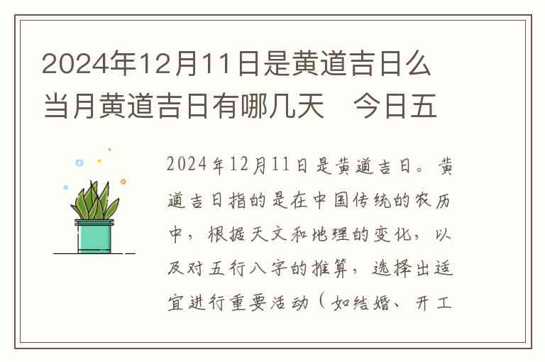 至于2024年12月的黄道吉日,除了12月11日,还有以下几天也是黄道吉日: