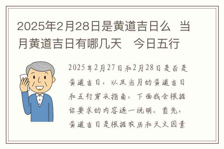 2025年2月27日和2月28日是否是黄道吉日,以及当月的黄道吉日和五行穿衣指南,下面我会根据你要求的内容逐一说明。