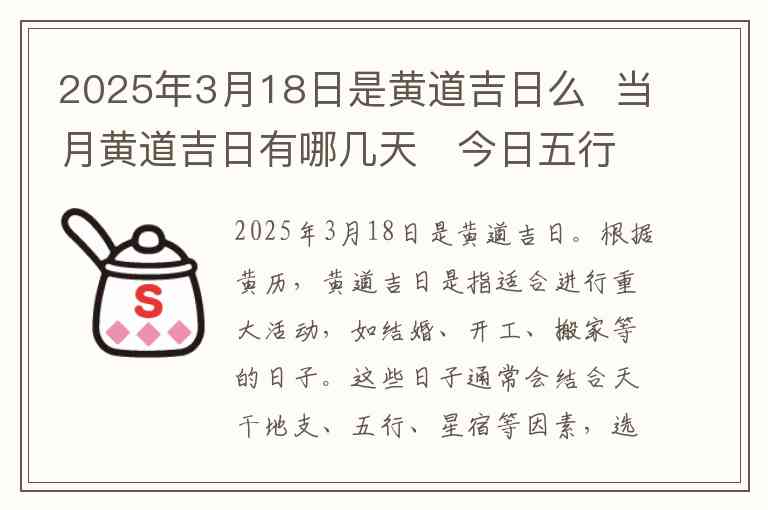 2025年3月18日是黄道吉日。
