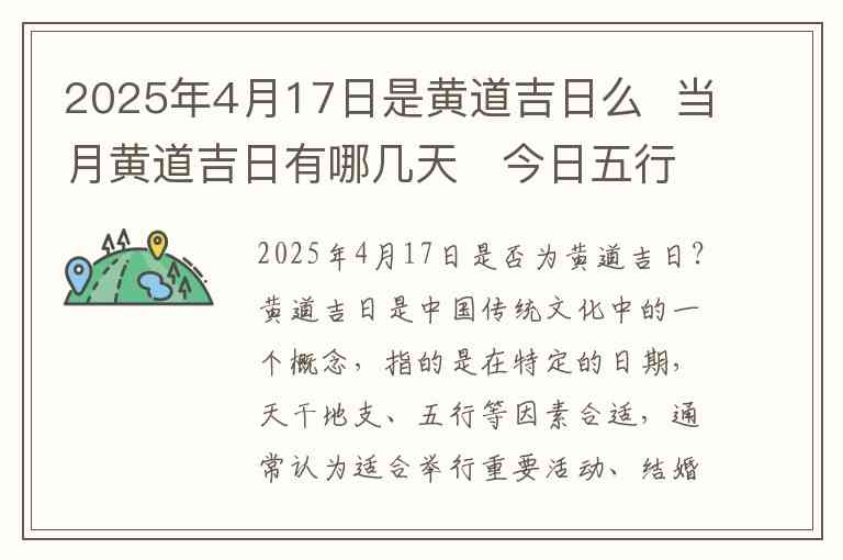 2025年4月17日是否为黄道吉日?