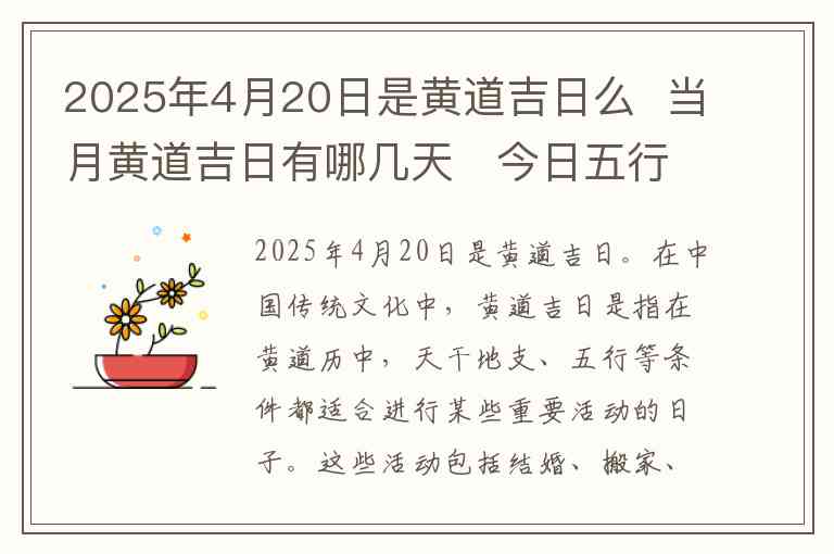 2025年4月20日是黄道吉日。
