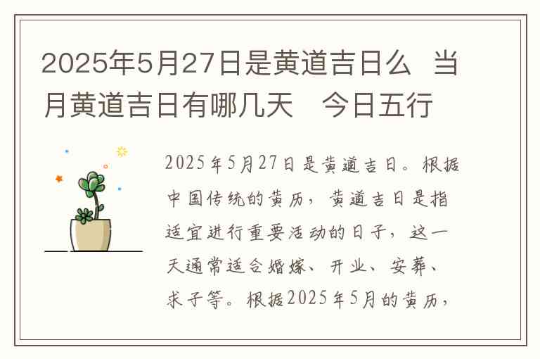 根据中国传统的黄历,黄道吉日是指适宜进行重要活动的日子,这一天通常适合婚嫁、开业、安葬、求子等。根据2025年5月的黄历,这一天是黄道吉日,适合进行各种吉利的事情。