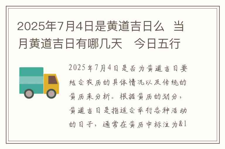 2025年7月4日是否为黄道吉日要结合农历的具体情况以及传统的黄历来分析。根据黄历的划分,黄道吉日是指适合举行各种活动的日子,通常在黄历中标注为“黄道”或者“吉日”。这些日子被认为是适合结婚、开业、搬家等大事的好时机。为了准确判断2025年7月4日是否为黄道吉日,首先需要知道那一天对应的是哪一天的农历日期。根据2025年的农历推算,7月4日是农历六月十六日,这一天不是特别标注为“黄道吉日”,因此不能算作黄道吉日。