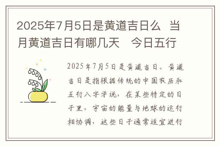 2025年7月5日是黄道吉日。
