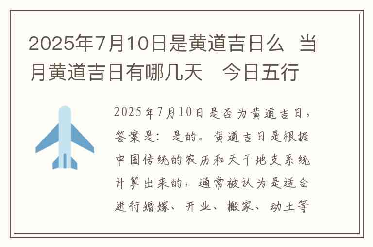 2025年7月10日是否为黄道吉日,答案是:是的。