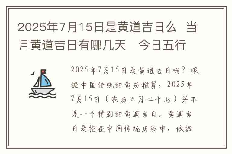 2025年7月15日是黄道吉日吗?