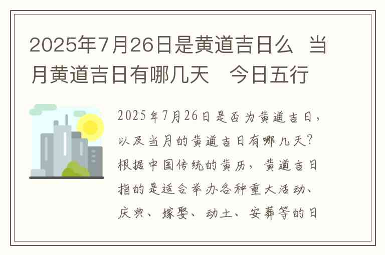 2025年7月26日是否为黄道吉日,以及当月的黄道吉日有哪几天?