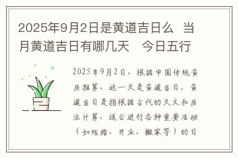 2025年9月2日,根据中国传统黄历推算,这一天是黄道吉日。