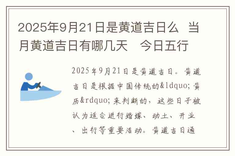 2025年9月21日是黄道吉日。