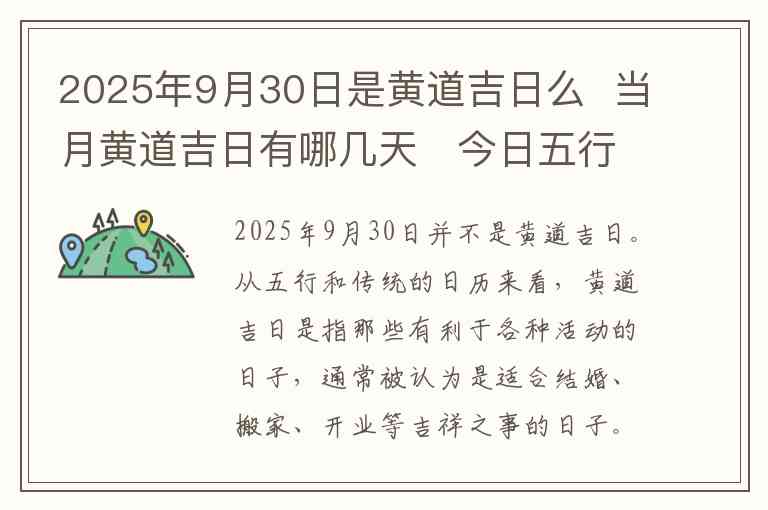 2025年9月30日并不是黄道吉日。从五行和传统的日历来看,黄道吉日是指那些有利于各种活动的日子,通常被认为是适合结婚、搬家、开业等吉祥之事的日子。然而,2025年9月30日并不符合这一天的吉利气象。