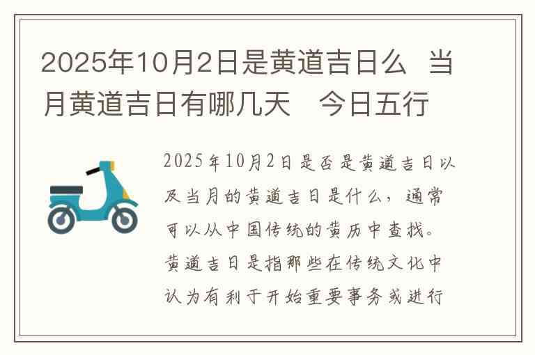 首先,我们来回答2025年10月2日是否为黄道吉日。从黄历的角度来看,2025年10月2日是己亥年九月二十日,属于一个相对平稳的日子,并没有特别的禁忌标志。尽管如此,根据一些传统的五行分析,这一天并不一定被认为是特别的黄道吉日,但它也并不算是忌日。若考虑一些细节方面的因素,是否适合某些具体活动还需更具体的分析。